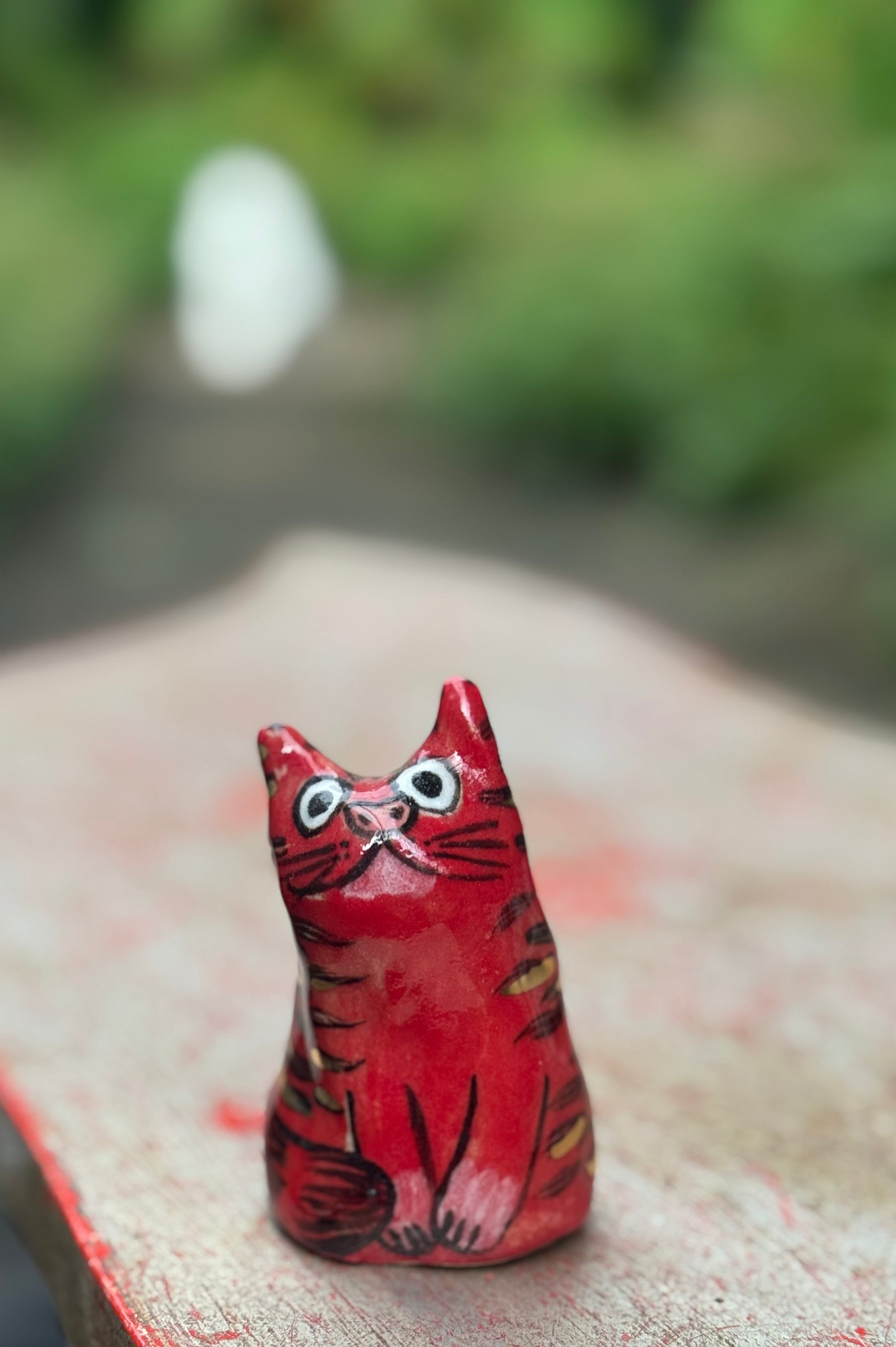 Bold in colour and quietly confident, this Small Red Blob Cat from the Lennie Range is full of subtle attitude. Glazed in a rich red with touches of gold and a cheeky white chin, it may be small in size but certainly not in presence.