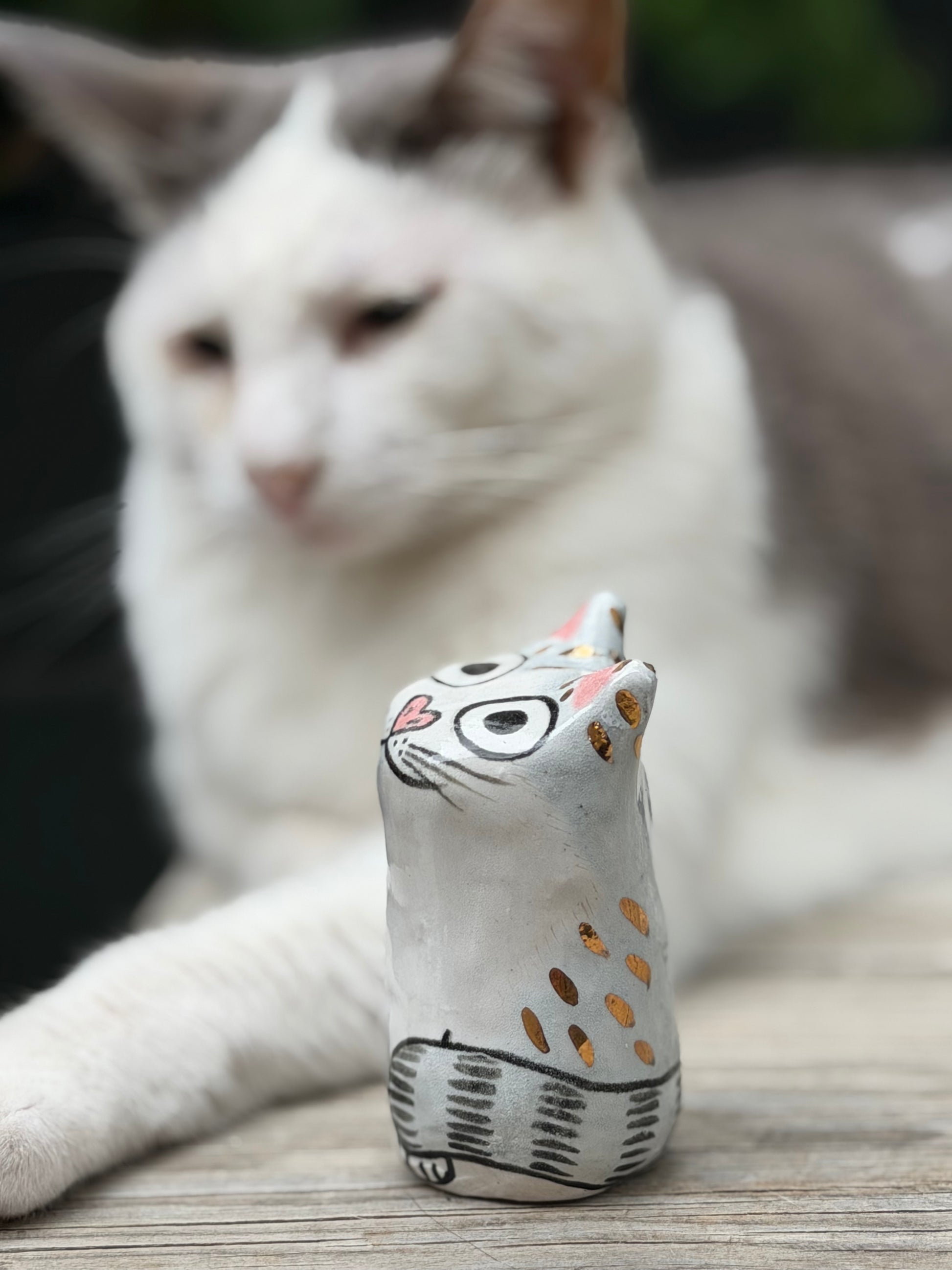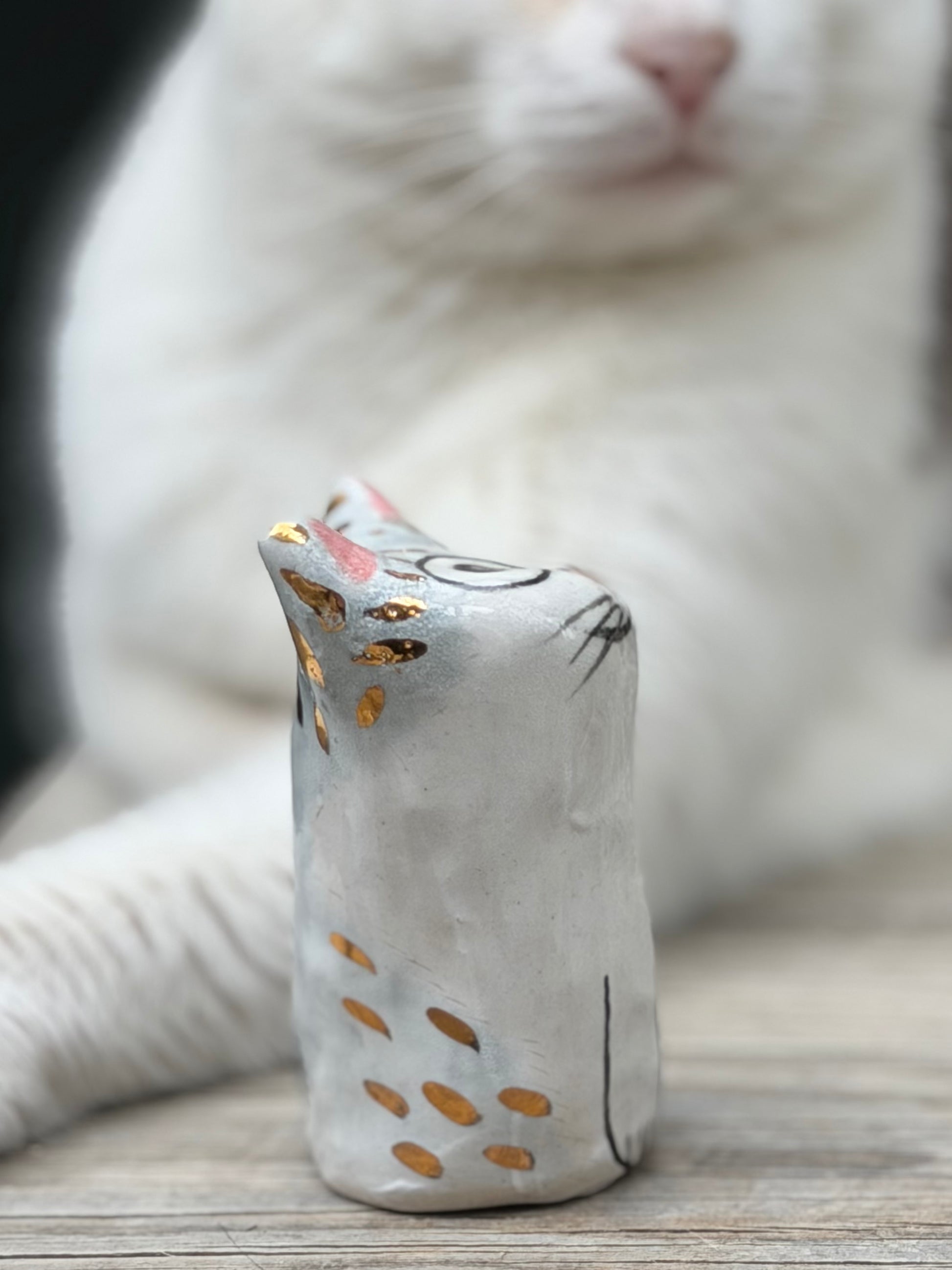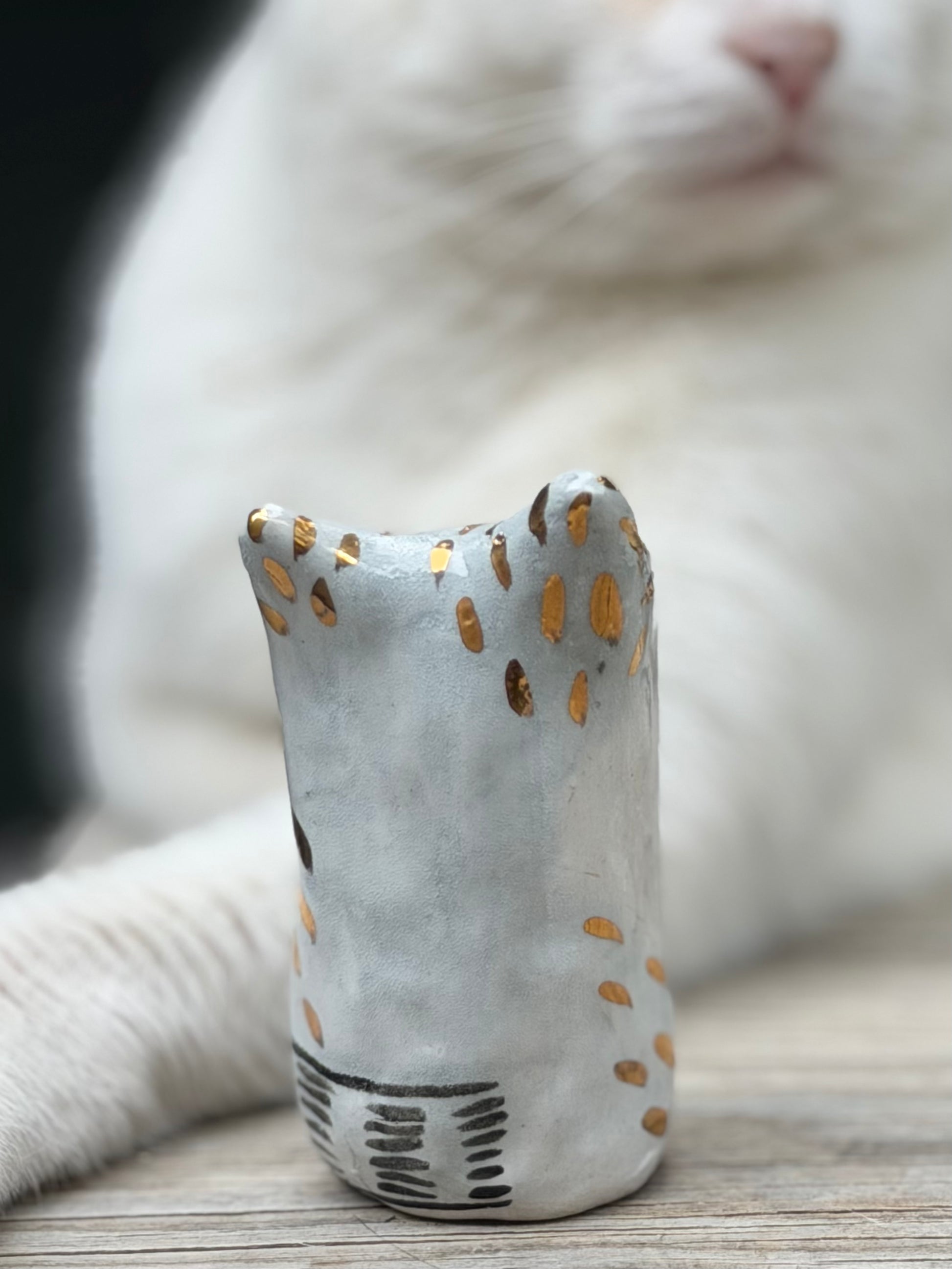 Elegant, composed, and perhaps a little pleased with itself, this medium Klaus Blob carries a quiet air of sophistication. It enjoys the finer things — a good seat in the sun, a beautiful shelf to sit on, and the occasional admiring glance. Sweet at heart but undeniably refined, it brings a touch of gentle glamour wherever it settles. Finished with subtle gold detailing.