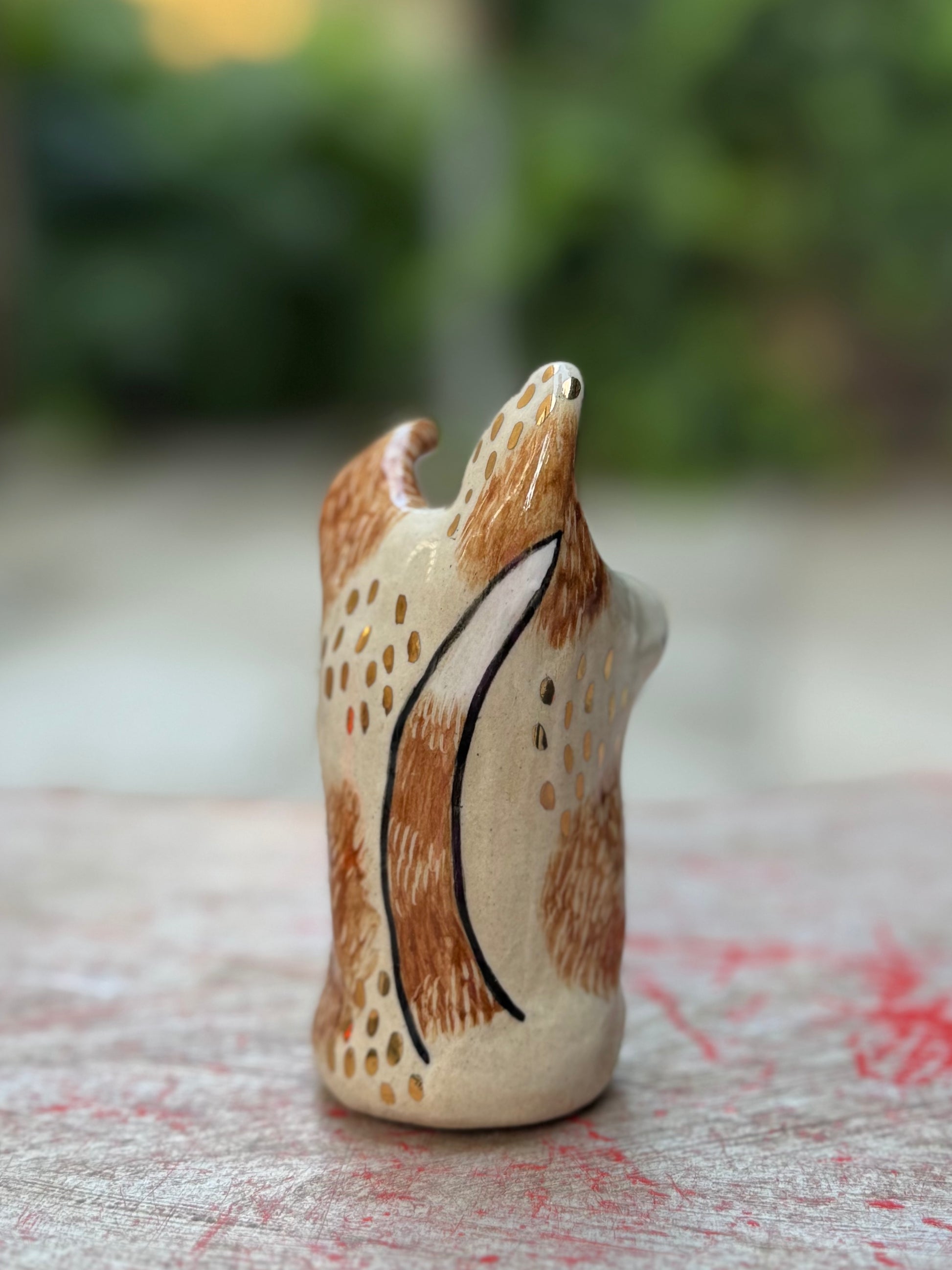 Always peeking over fences and sniffing out the latest gossip, this medium Blob Dog with gold accents is sweet, friendly, and just a little cheeky. It loves company, a good story, and making sure it knows what’s happening in the neighbourhood.