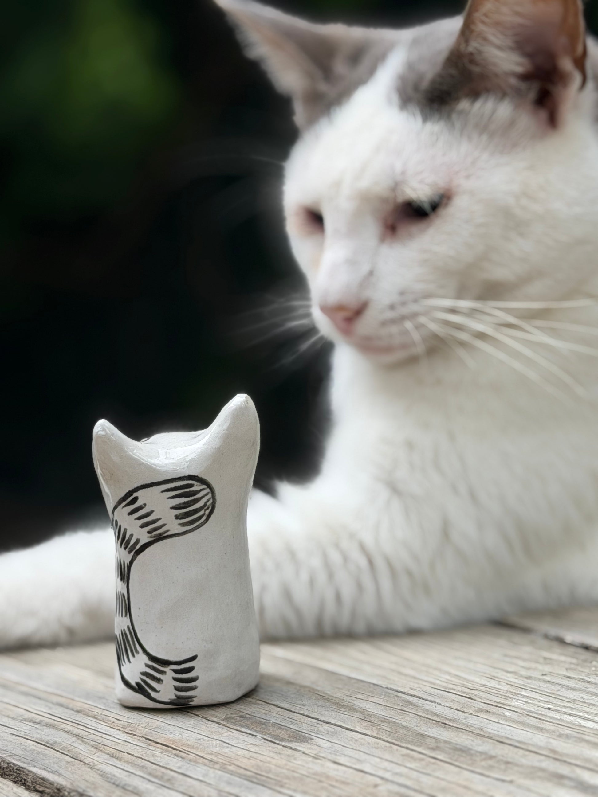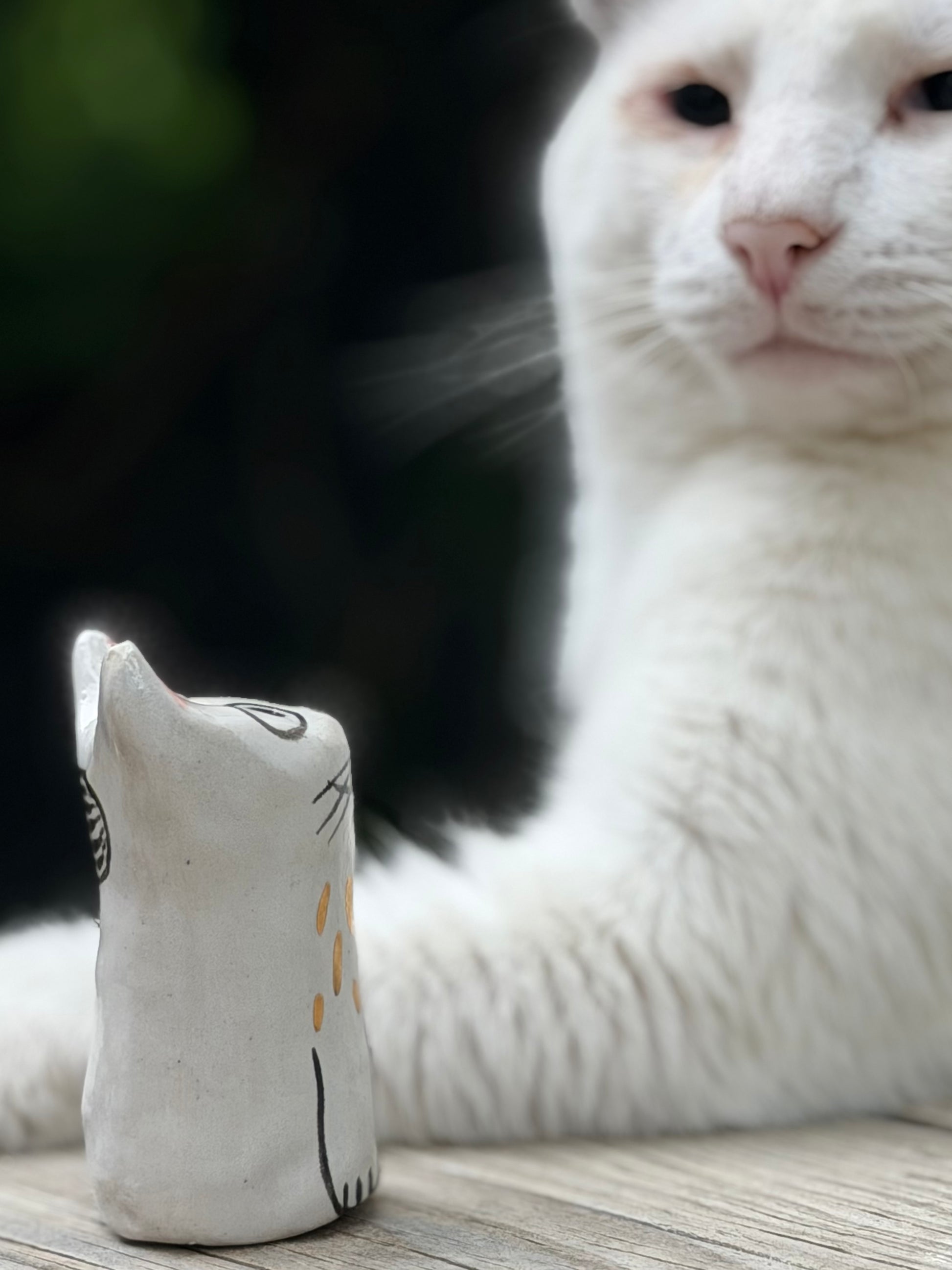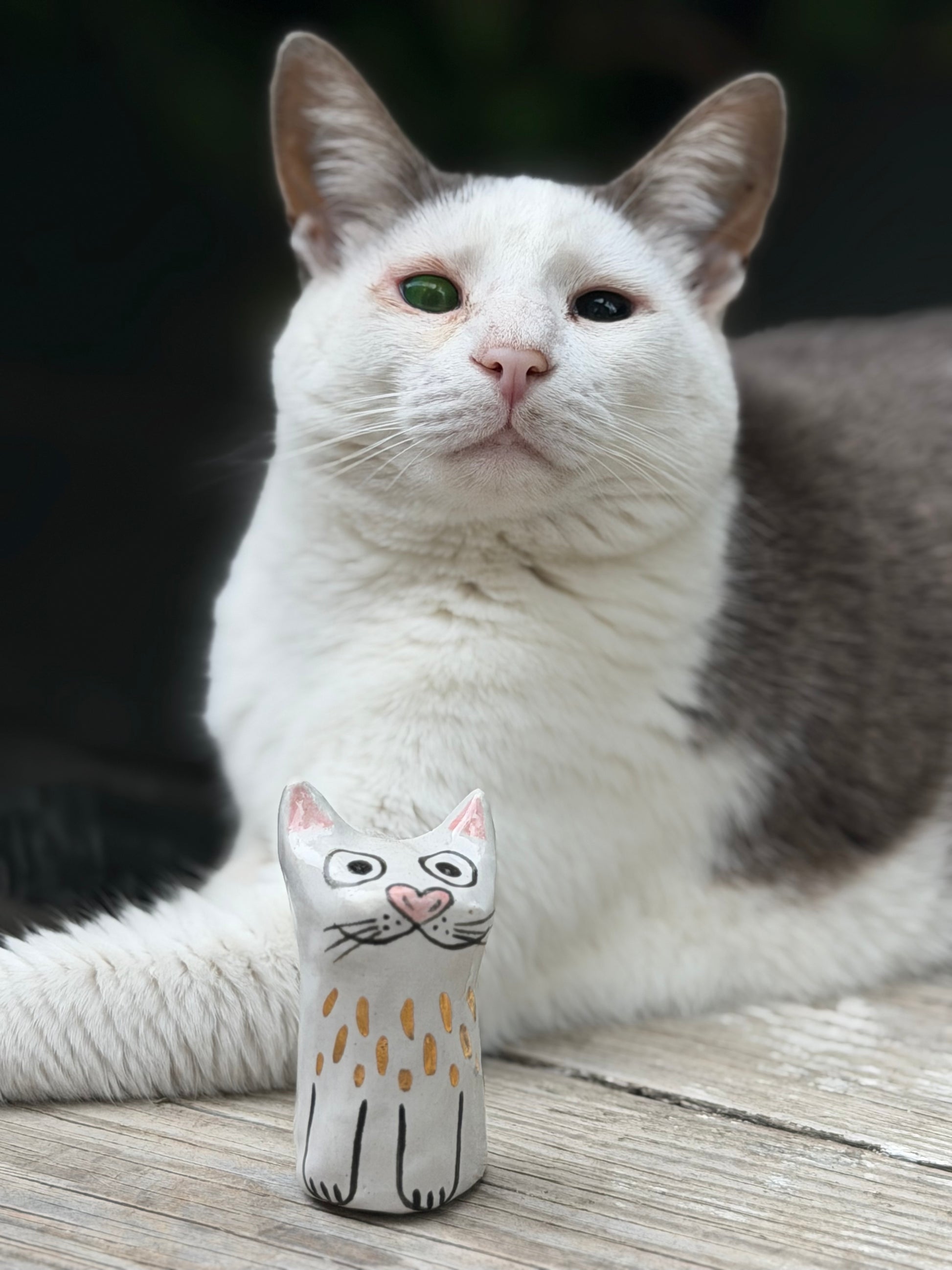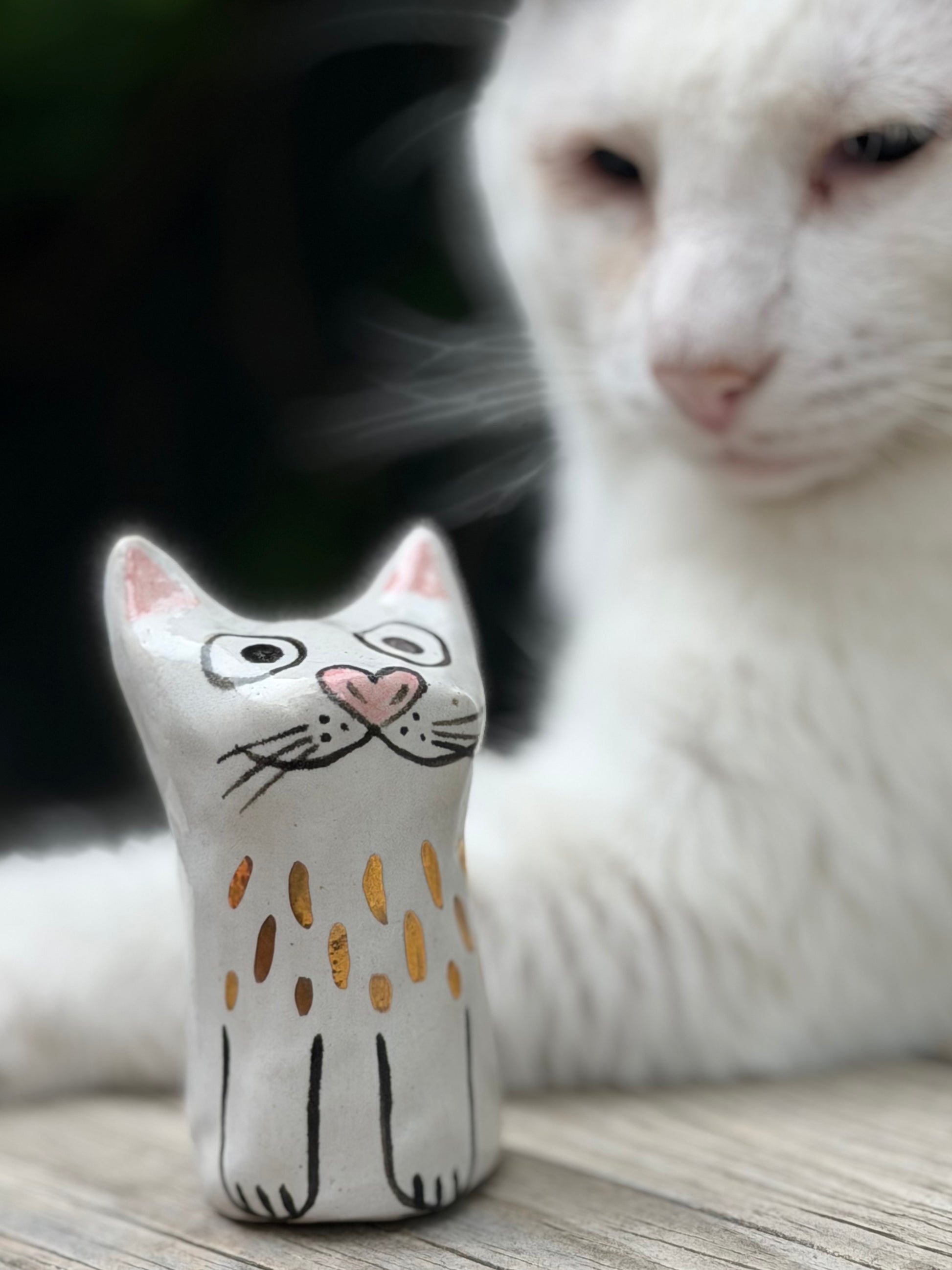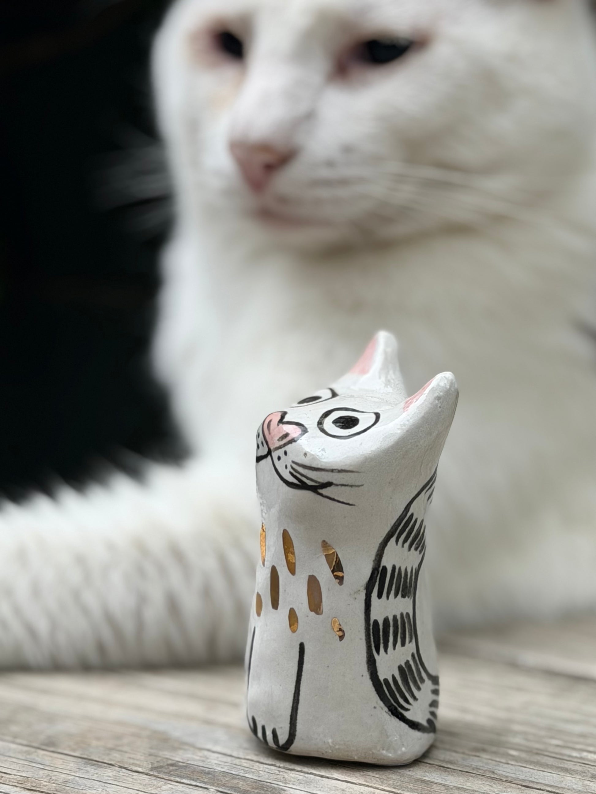 Warm, gentle, and quietly joyful, this small Klaus Blob has a soft smile that seems to brighten the room. Sweet-natured and full of affection, it carries a calm, loving presence that makes it an easy companion for any space. Finished with subtle gold detailing for a small touch of glow.