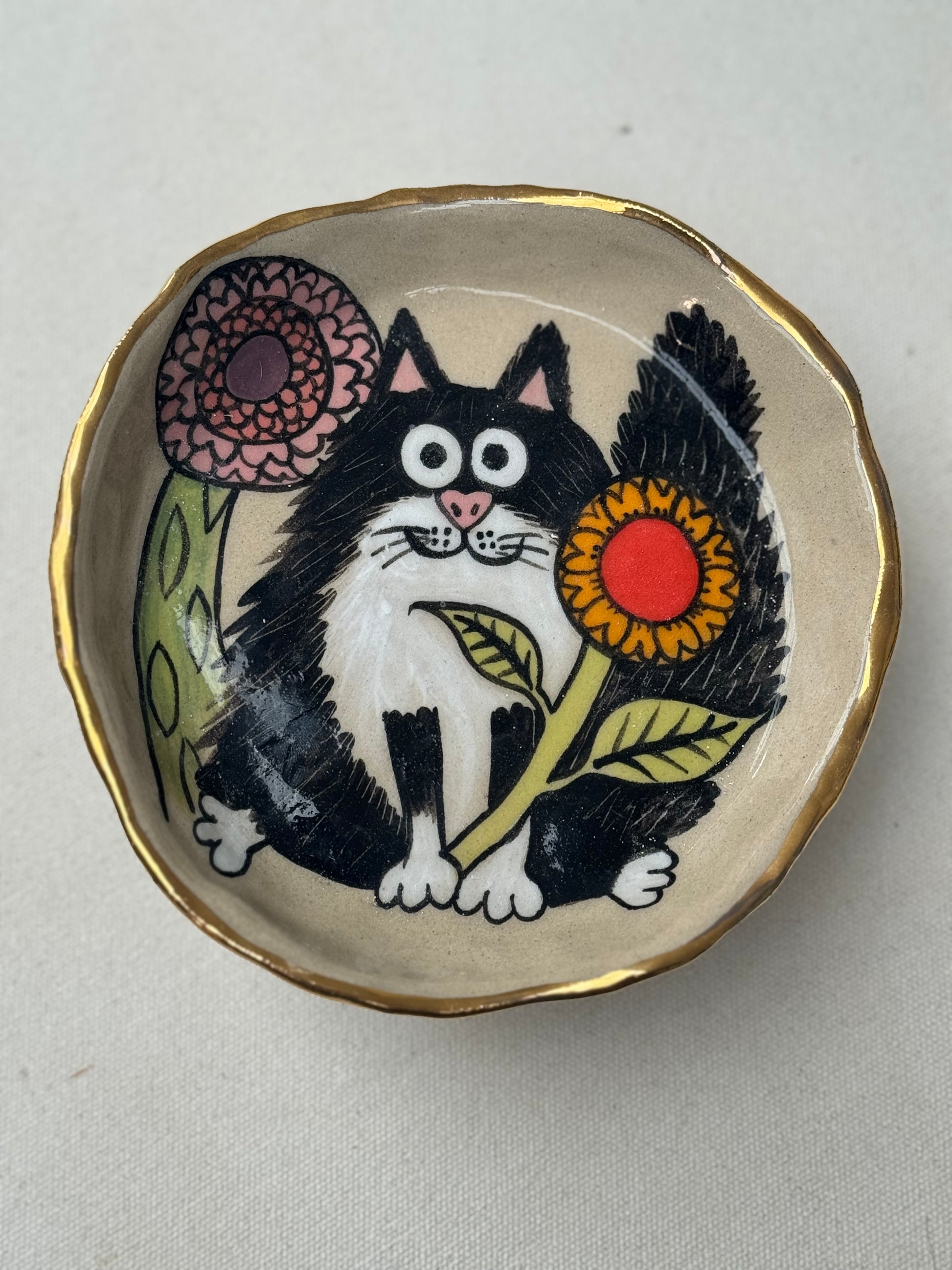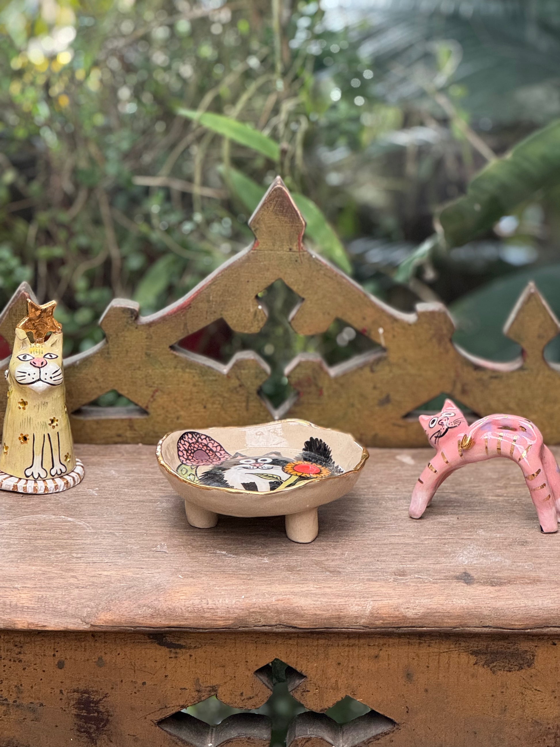 A versatile ceramic piece with a feline twist. Our Whisker Dishes are hand-painted with joyful cats and created to be functional or decorative. Whether used as a chic cat food bowl, trinket dish, candle holder, soap rest, or probably most appropriately a bowl to hold your Blob cat collection — this piece brings personality to any corner of your home.